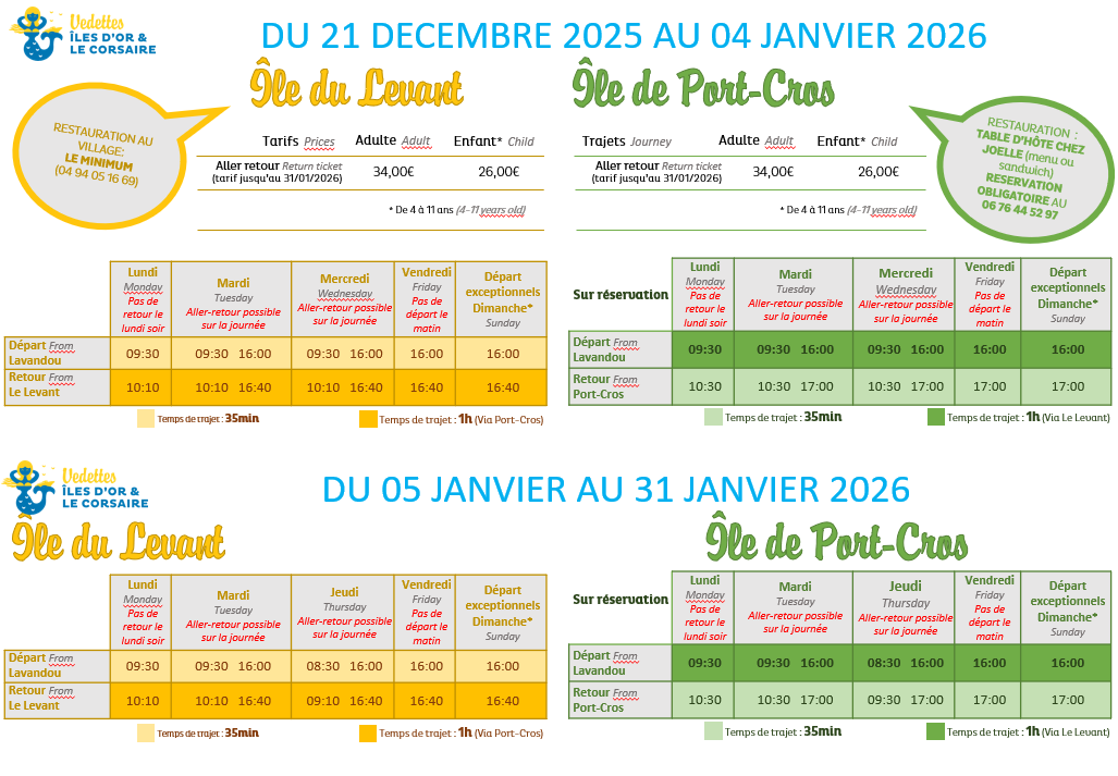 Horaires et tarifs
